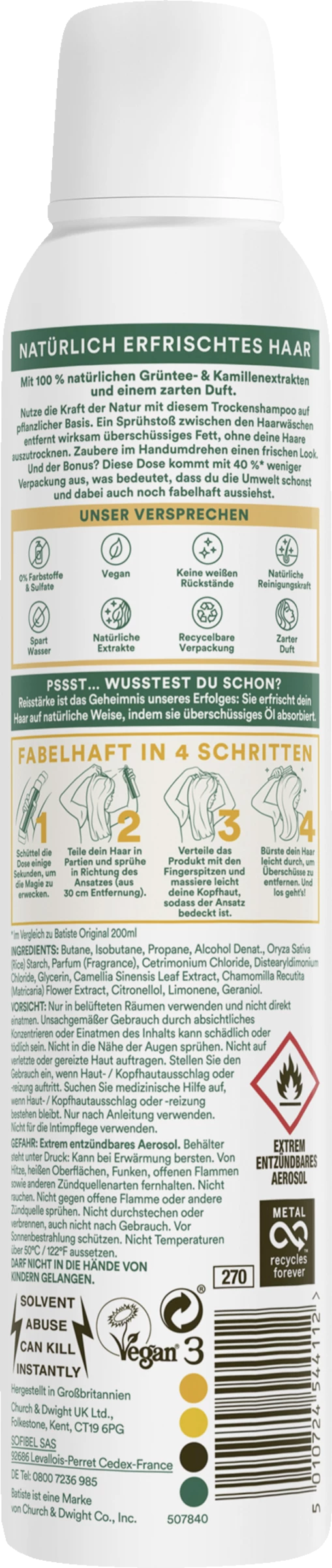 Natürlich erfrischtes Haar. Mit 100 % natürlichen Grüntee- & Kamillenextrakten und einem zarten Duft.