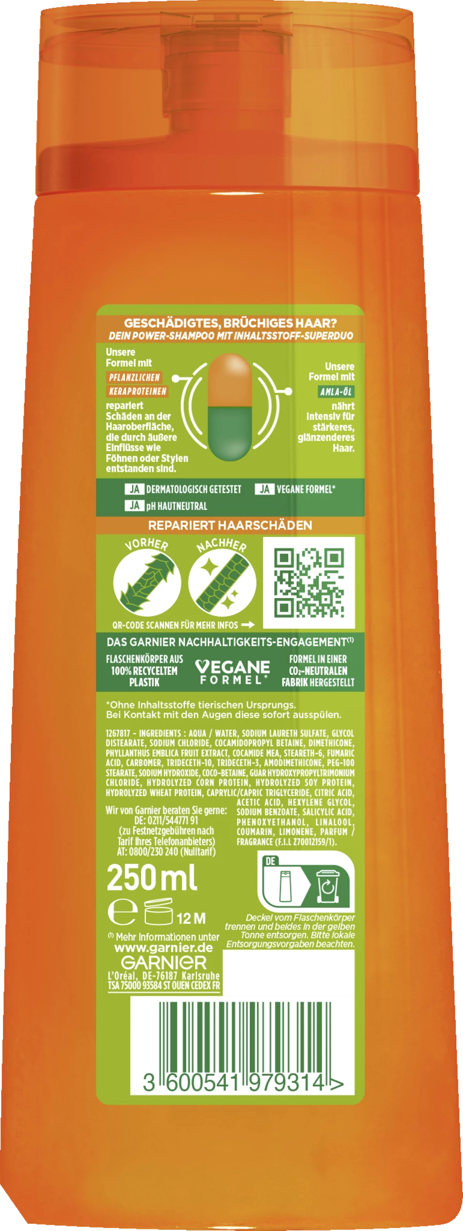 Garnier Fructis Schaden Löscher Kräftigendes Shampoo auf das nasse Haar auftragen und sanft auf der gesamten Kopfhaut einmassieren. Anschließend gründlich ausspülen.
