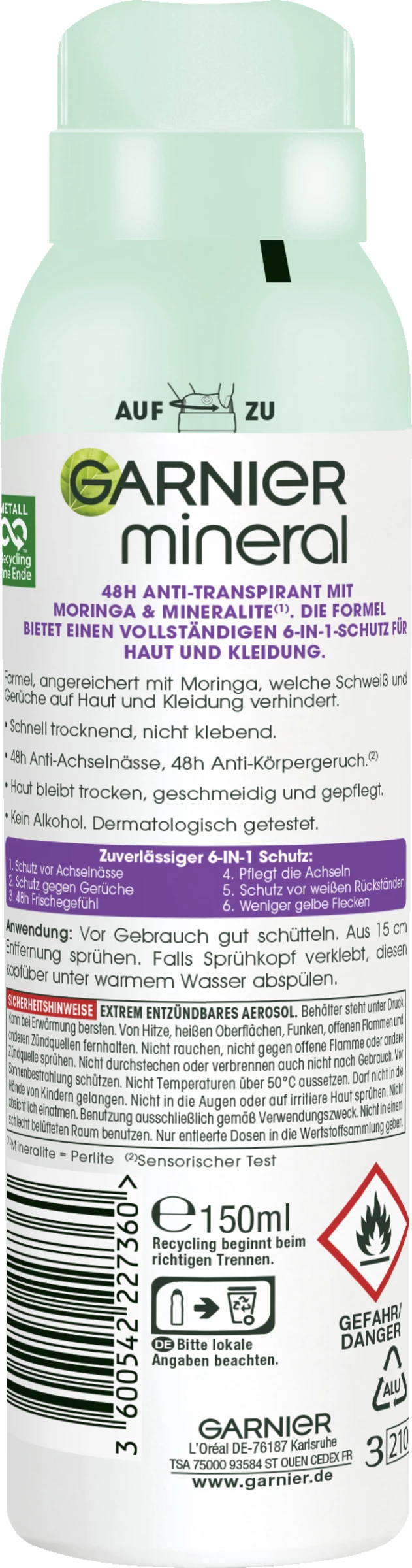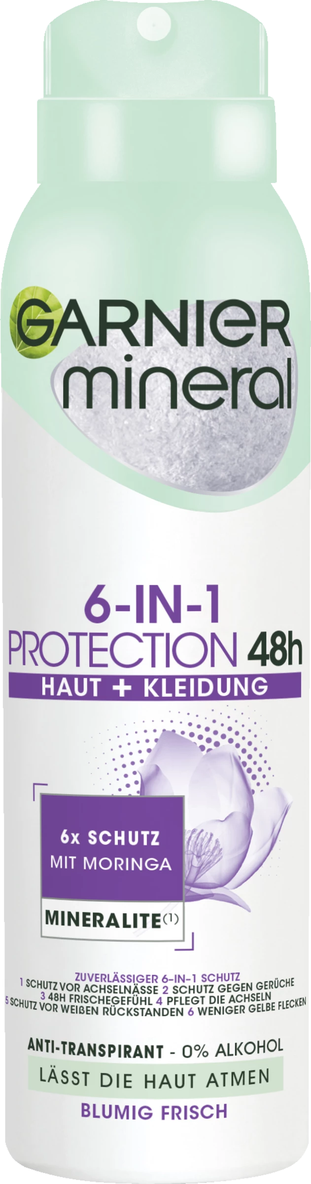 Hitze, Stress, Sport? Für den Garnier Mineral Protection 5 Spray kein Problem. Das Anti-Transpirant für Damen überzeugt mit einer 5-in-1-Wirksamkeit: