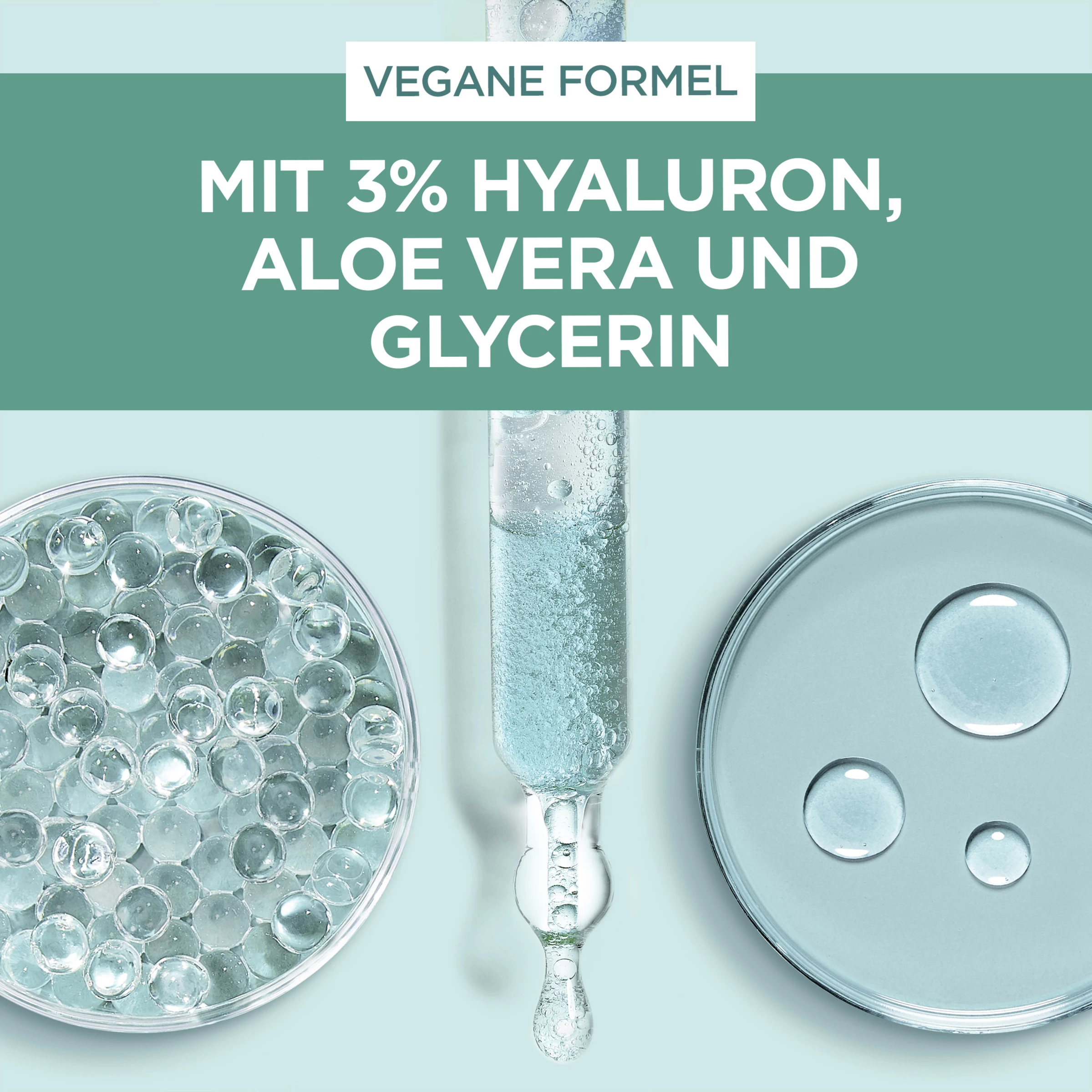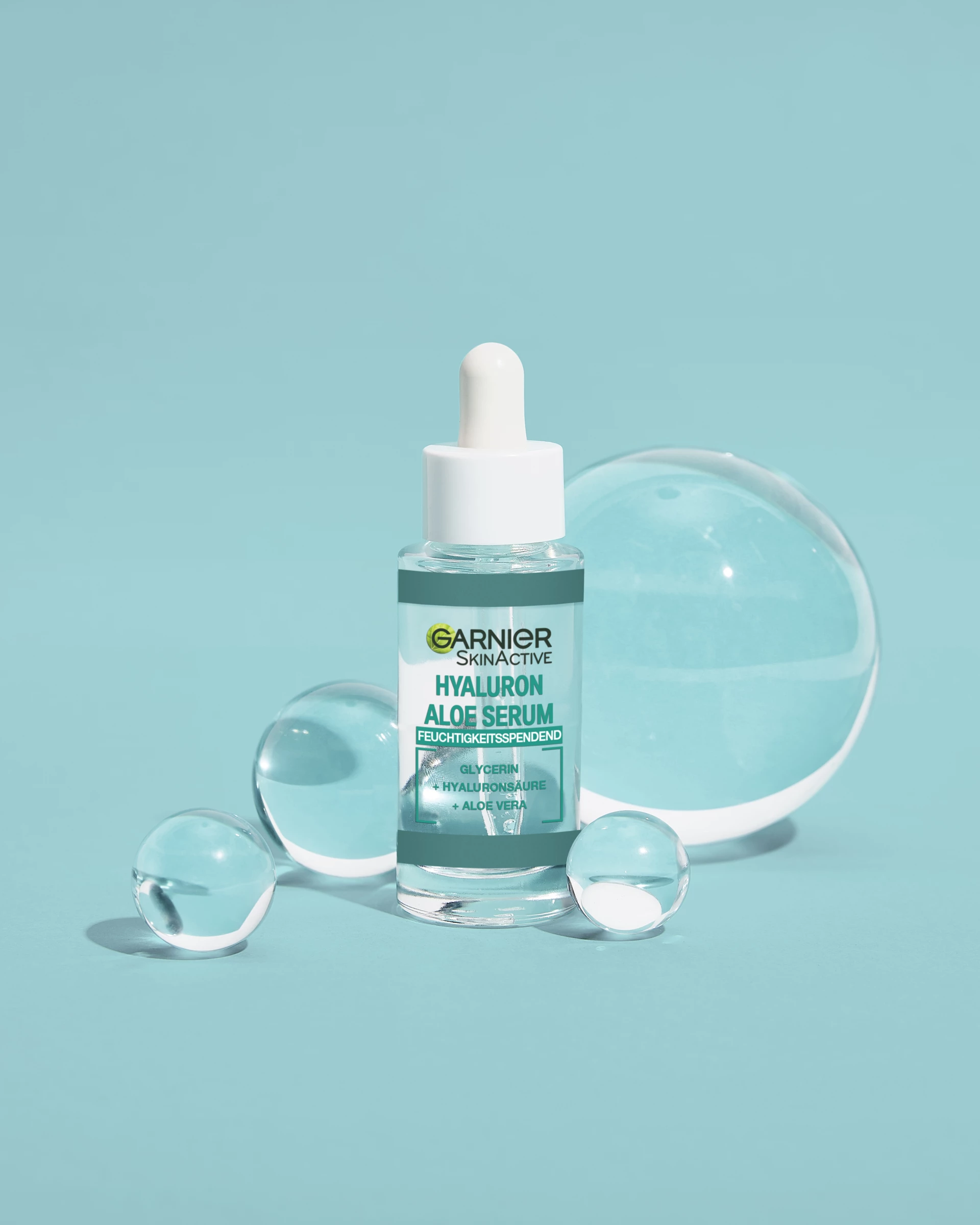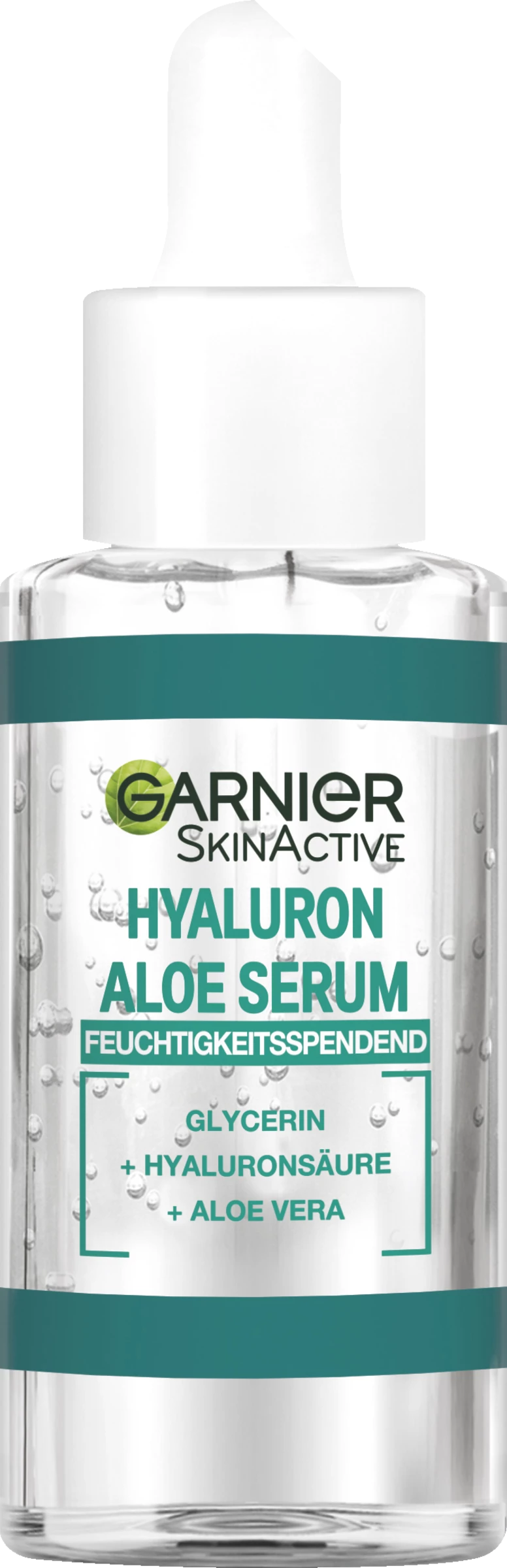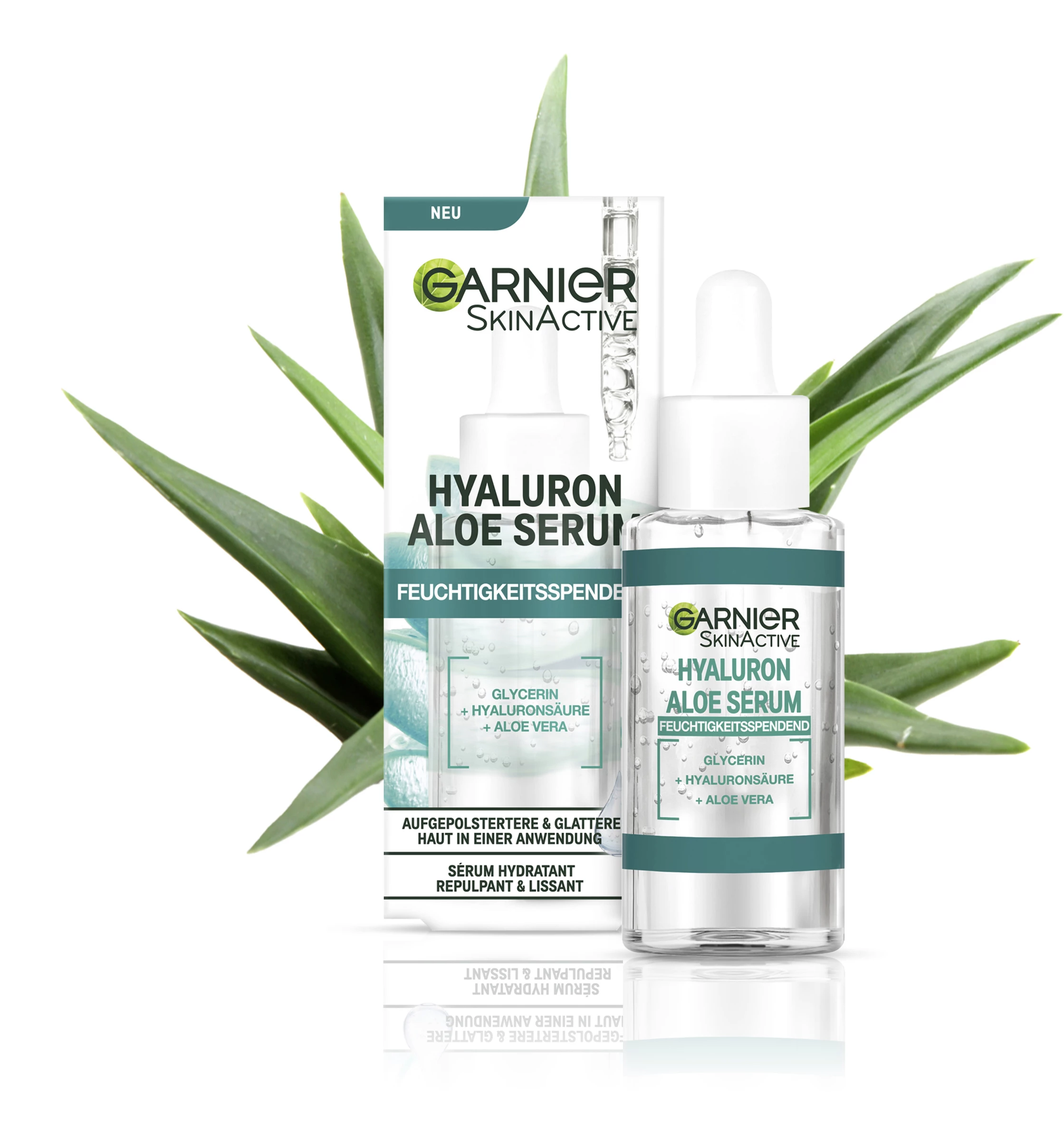 Das Garnier SkinActive Hyaluron Aloe Serum ist intensiv feuchtigkeitsspendend und fördert ein glatteres Hautbild. Dank Dreifach-Kombination essentieller Inhaltsstoffe wird die Haut optimal mit Feuchtigkeit versorgt. Gleichzeitig wird die Hautschutzbarriere gestärkt. Durch Biotransformation gewonnen, hat Hyaluronsäure einen besonders aufpolsternden Effekt auf die Haut. Glycerin wirkt im Zusammenspiel mit Aloe vera langanhaltend hydratisierend. Zudem sorgt Aloe vera für ein wunderbar erfrischendes Gefühl. Die vegane Formel des Hyaluron Aloe Serums lässt die Haut sofort glatter und geschmeidiger erscheinen. Bei regelmäßiger Anwendung gewinnt die Haut sichtbar an Spannkraft und scheint gepflegter – für ein verschönertes Hautbild und eine verbesserte Ausstrahlung.