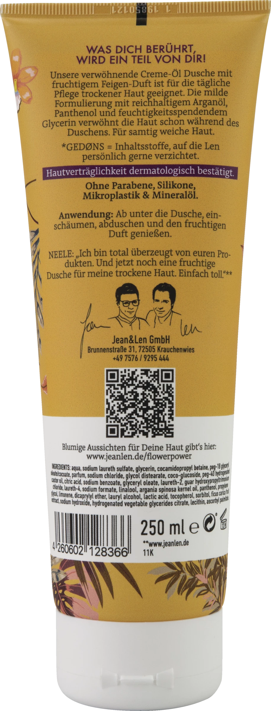 Die verwöhnende Creme-Öl Dusche duftet nicht nur fruchtig-frisch, sondern versorgt Deine Haut mit reichhaltigem Arganöl und Feigenextrakt. Glycerin spendet Deiner Haut Feuchtigkeit und bewahrt vor dem Austrockenen. Für samtig weiche Haut und ein wohltuendes Duscherlebnis.