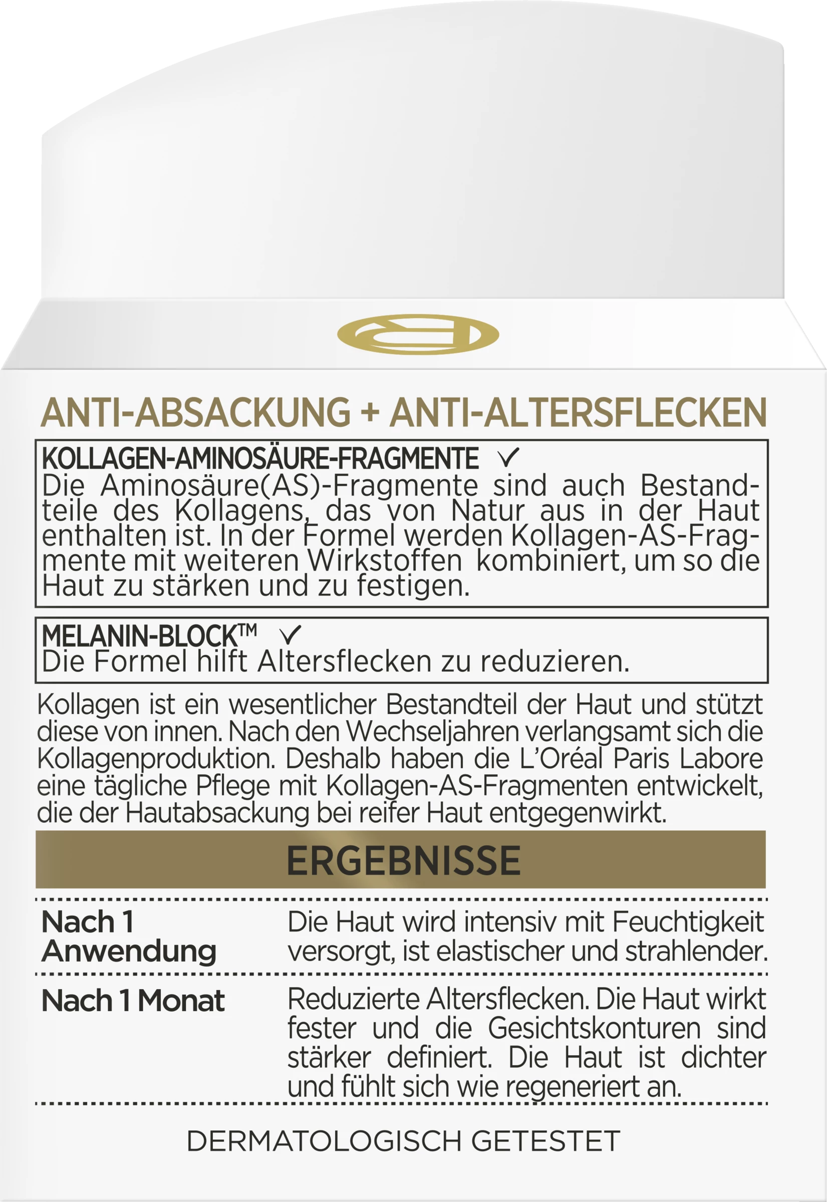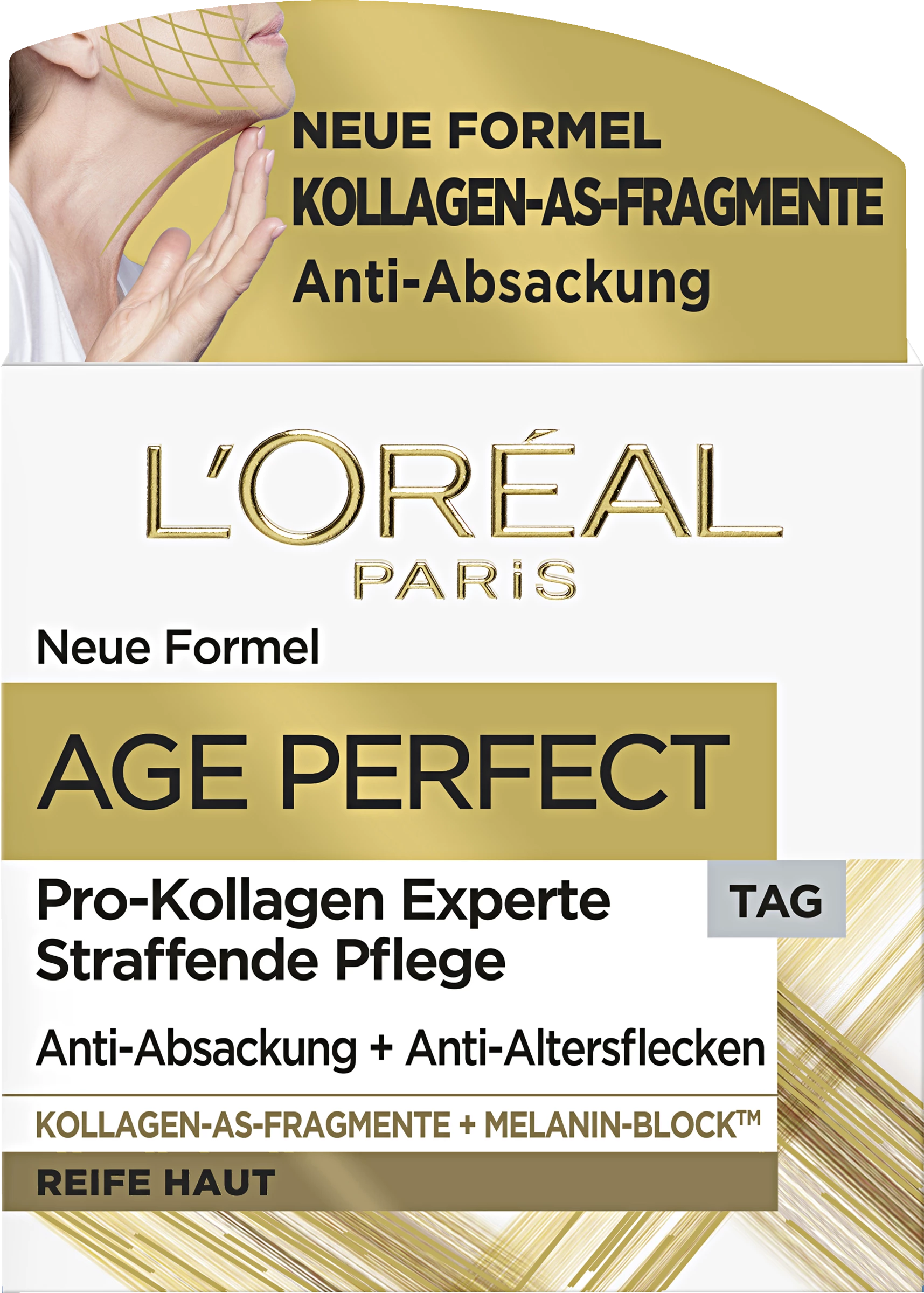 Die Age Perfect Pro-Kollagen Experte Tagescreme mit der wirkungsvollen Kraft von Kollagen-AS-Fragmente wirkt der Hautabsackung entgegen und stimuliert die Stützfasern der Haut für mehr Straffheit.