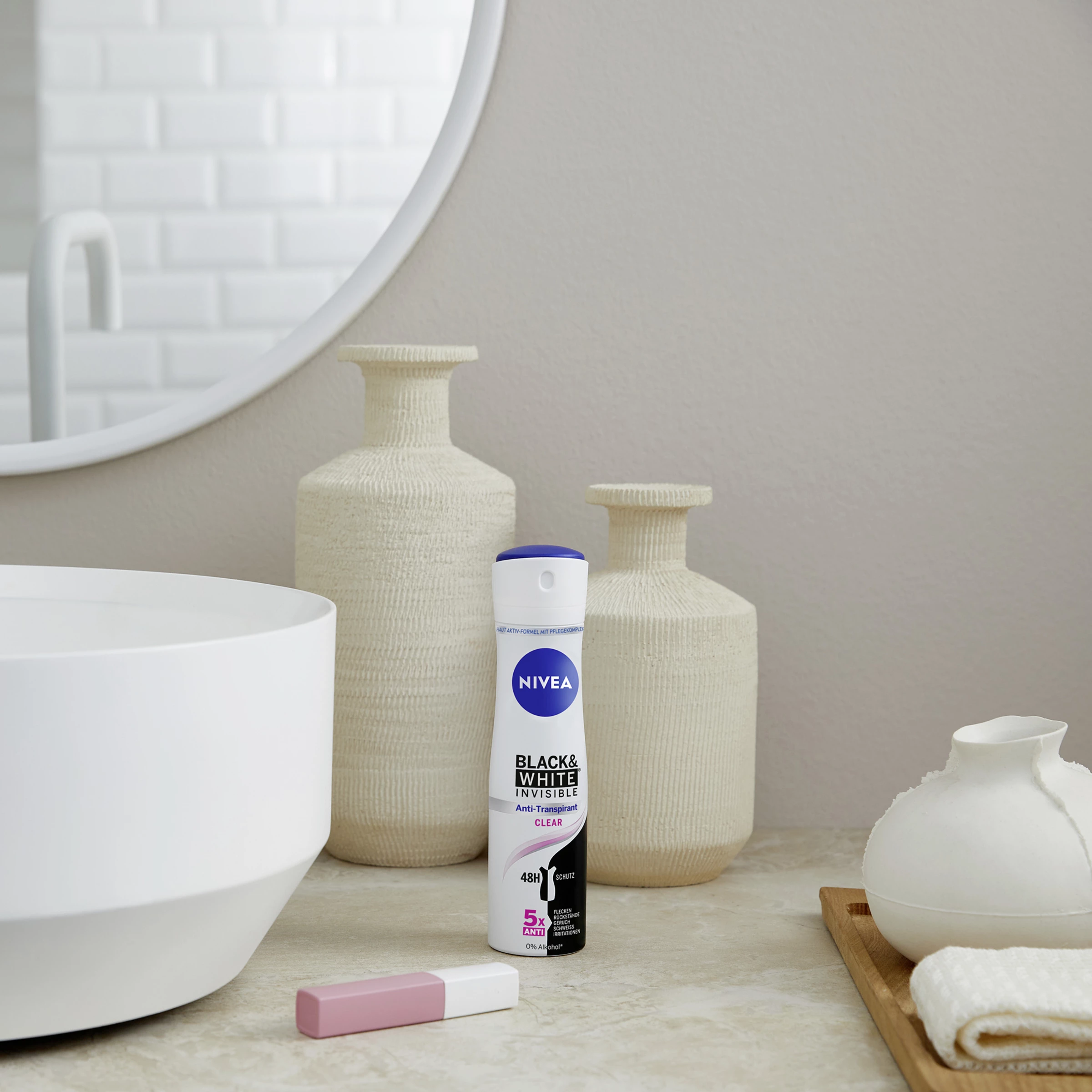 NIVEA Black & White Invisible Clear bietet einen Anti-Transpirant-Schutz vor Achselnässe und Körpergeruch – 48 Stunden lang. Die hochwirksame Formel schützt vor gelben Flecken auf weißer Kleidung und weißen Rückständen auf dunklen Textilien und ist nun als Light-Weight Can in einer nachhaltigeren Dose verfügbar. Für Deo-Schutz, den man nicht sieht, aber fühlt.