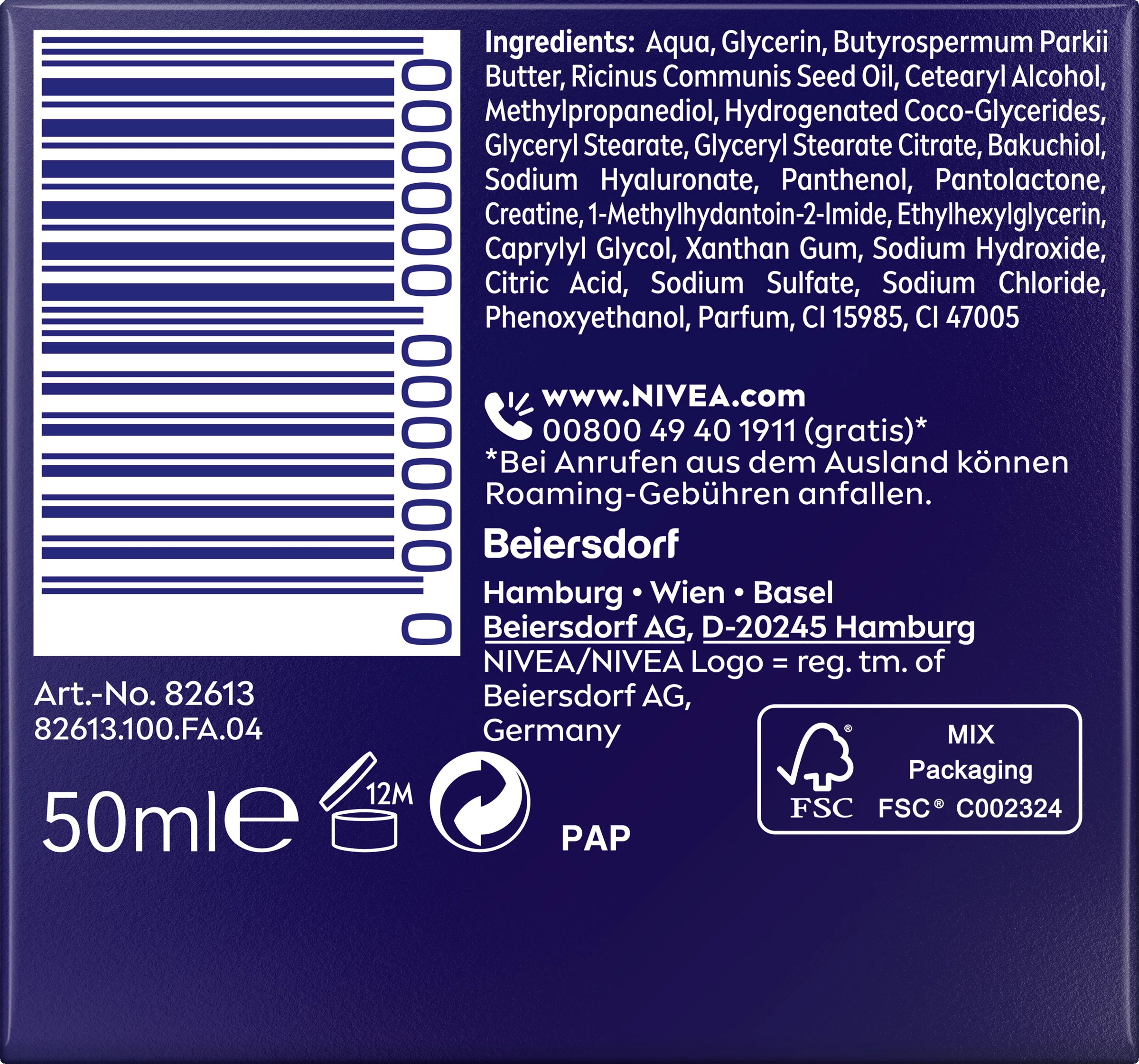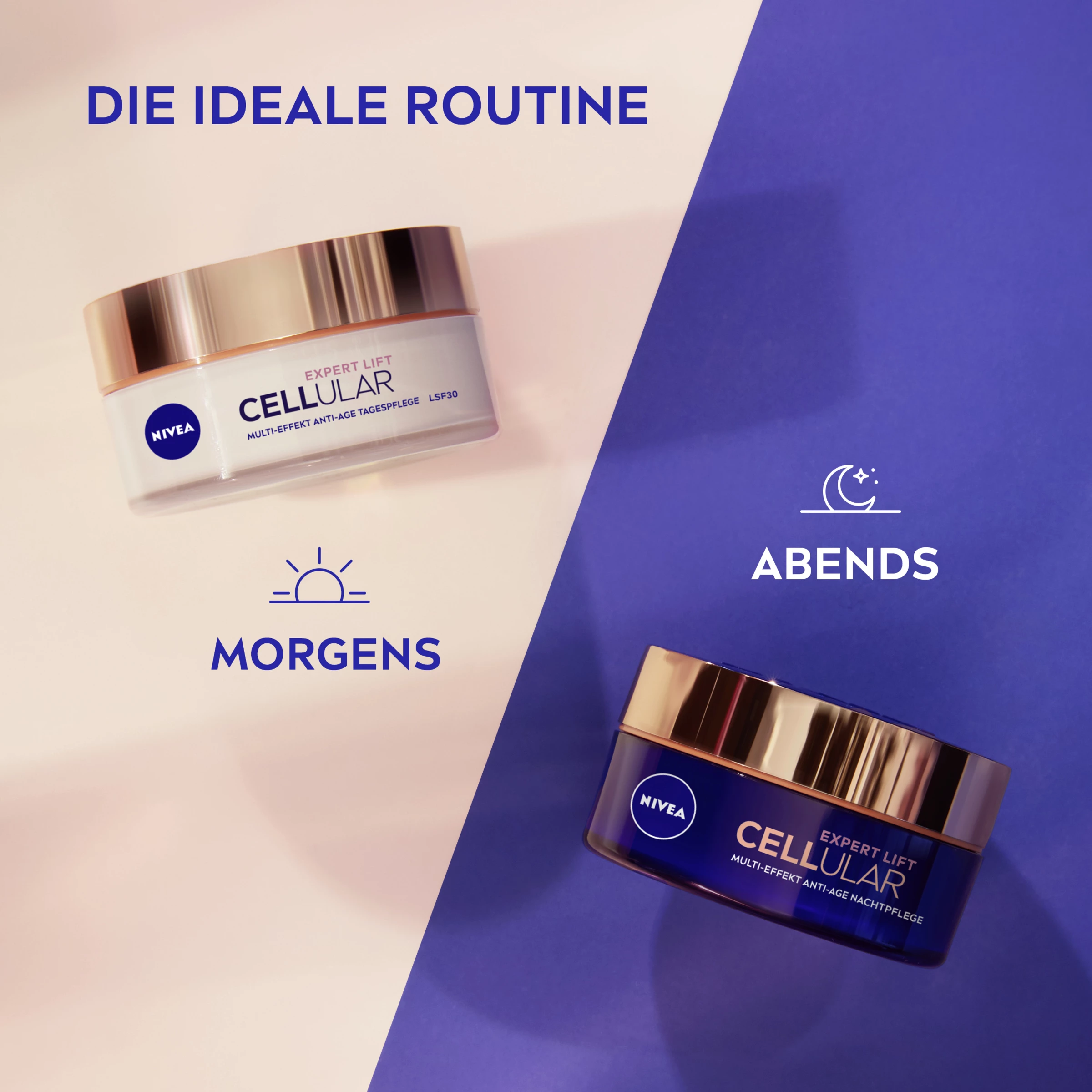 Die Cellular Expert Lift Multi-Effekt Anti-Age Nachtpflege – mit Bakuchiol als Alternative zu Retinol – ist die ideale Anti Age Nachtcreme für jünger aussehende Haut. Unsere innovative Formel erhöht die Zellaktivität tief im Hautinneren & hilft die Haut zu festigen.* Pures Bakuchiol, eine neue Anti-Age Wirkstoffgeneration bei NIVEA & Hyaluronsäure unterstützen die Kollagenproduktion bereits ab 4h nach der Anwendung. Sie versorgen die Haut mit intensiver Feuchtigkeit, glätten sie & mildern Falten sichtbar.
