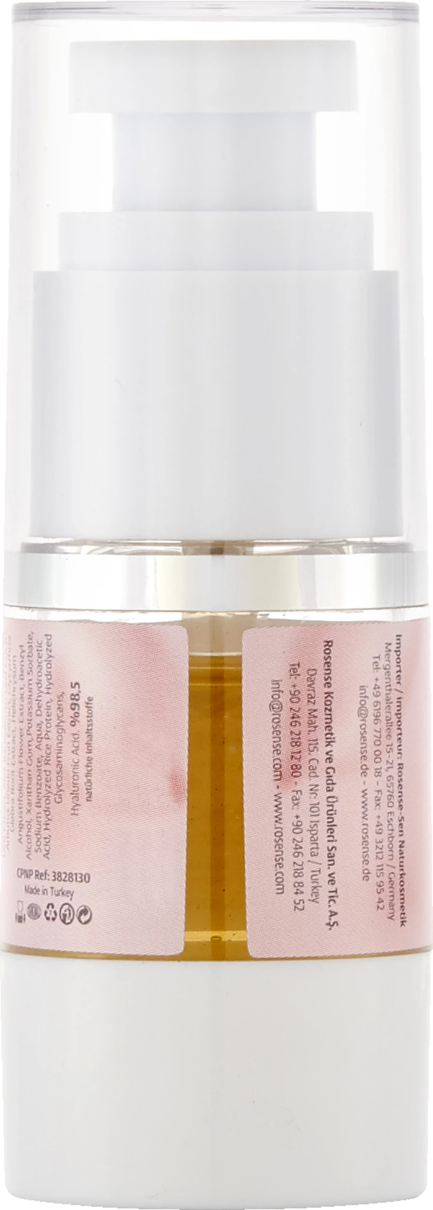Dieses Serum, dass die empfindliche Struktur Ihrer Augenpartie mit den reichhaltigen und natürlichen Komponenten der Natur umgibt, nährt und befeuchtet Ihre Augenpartie und verleiht Ihren Augen dank der darin enthaltenen natürlichen Extrakte aus Rosenwasser und Heidelbeeren Energie, Jugend und Frische. Außerdem mildert sie dank des Hyaluronsäurekomplexes das Erscheinigungsbild von feinen Linien und hilft Augenringe und Schwellungen zu reduzieren.