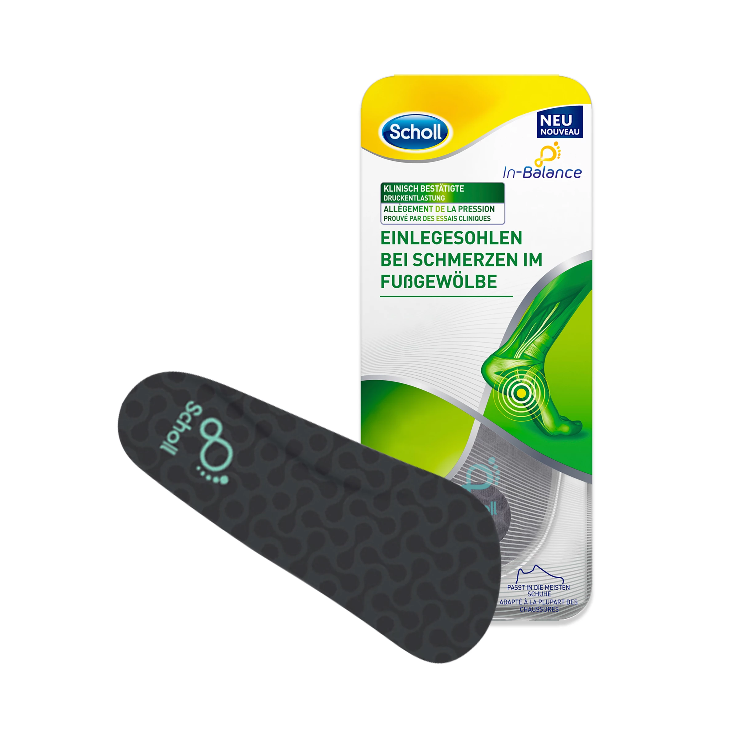 Unsere Füße können der Ausgangspunkt für Alltagsbeschwerden sein, die im Bereich vom Knie bis zur Ferse auftreten. Die Scholl In-Balance Einlagen wurden gemeinsam mit einem Team von Biomechanikexperten entwickelt und wirken dreifach, um zu helfen, Schmerzen von Knie bis Ferse zu lindern.