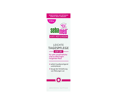 sebamed Anti-Rötungen Leichte Tagespflege hilft, bei regelmäßiger Anwendung, der Entstehung neuer Rötungen vorzubeugen und bestehende zu mildern. Sehr empfindliche, zu Rötungen neigende Haut ist infolge einer gestörten Hautbarriere und sehr empfindlicher Nervenfasern anfälliger für Reizungen. Schubartige Rötungen, Hitze- und Spannungsgefühl im Gesicht sind die Folge. Durch die Erweiterung der Blutgefäße in der Haut können anhaltende Rötungen entstehen.